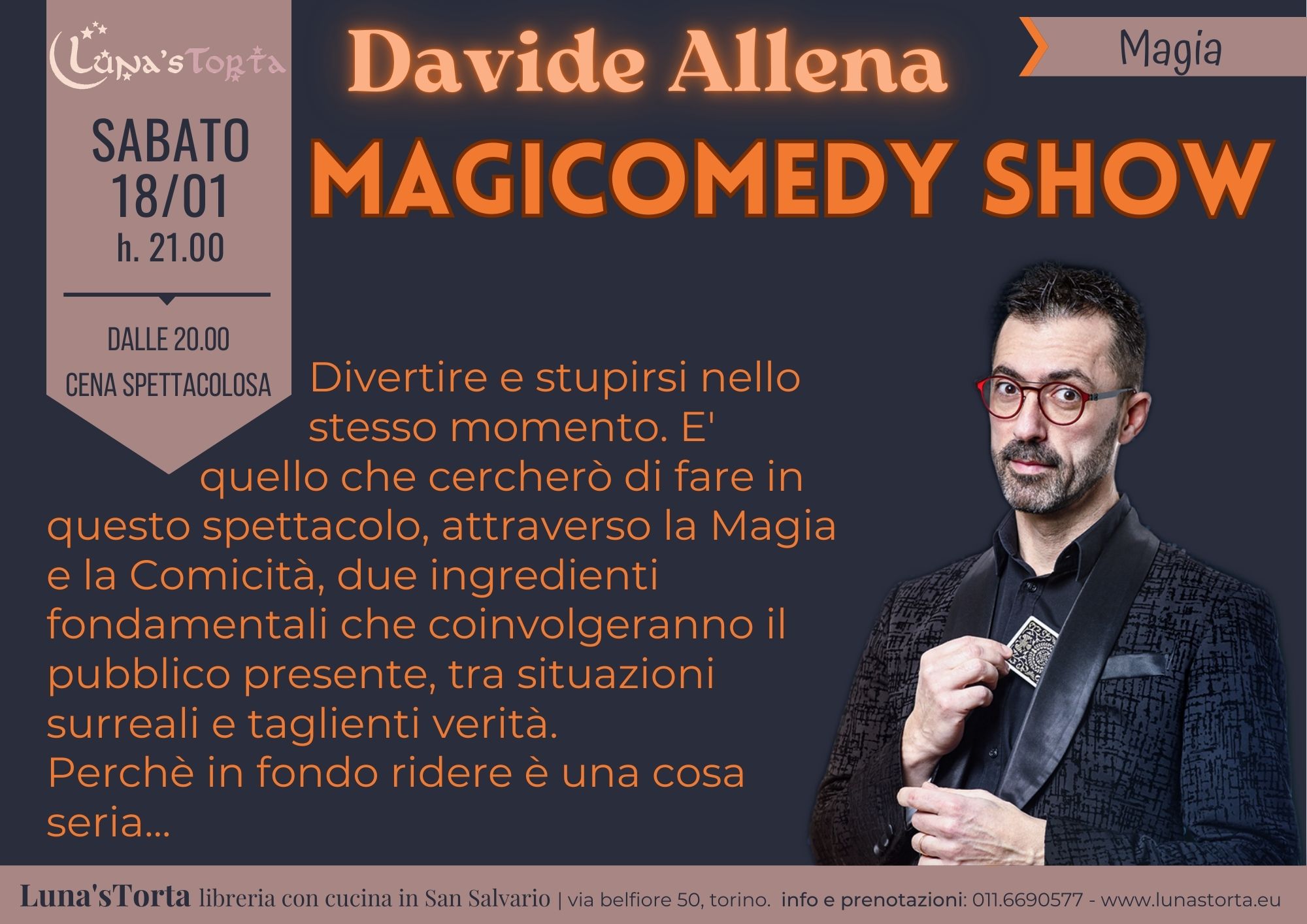 Inizia il nuovo anno e con lui anche le nostre proposte eventi si rinnovano: cominciamo le novità del 2025 ospitando Davide Allena con il suo MagiComedy Show.